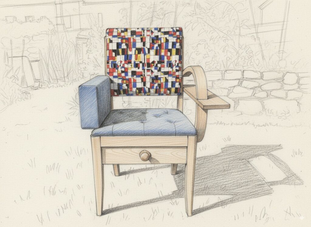 Je me propose de métamorphoser un fauteuil bridge, symbole de rigueur et de stratégie, en un fauteuil dédié à la dégustation de Whisky, incarnation de l’éphémère et de la futilité assumée.